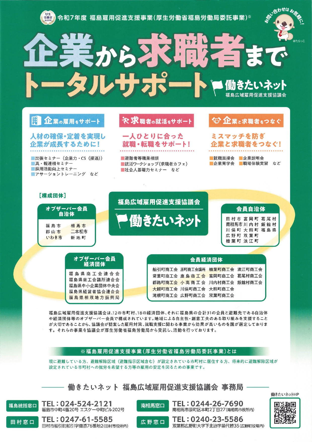 広域雇用促進支援協議会(働きたいネット)では、企業から求職者までのトータルサポートを行っております。 サポートの他、企業と求職者のマッチングも行っております。 ぜひ、ご活用ください。
