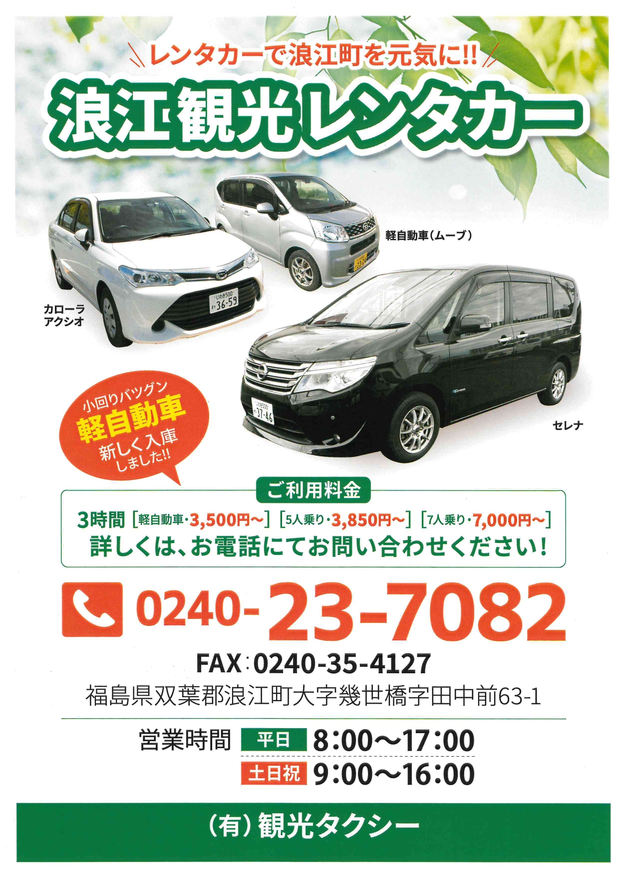 スマートフォンやデジタル停留所から予約できる便利な乗り合い町内交通です。浪江町にお越しの際はぜひご利用下さい。 ※ご利用は、月曜日~土曜日 〇月・火曜:8:00~19:30 〇水・木・金曜:8:00~21:30 〇土曜:9:30~19:30 〇祝日(日曜除く):9:30~19:30